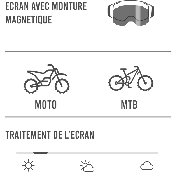 Il est équipé d'un écran magnétique détachable, facilement interchangeable pour s'adapter à toutes les conditions de luminosité.